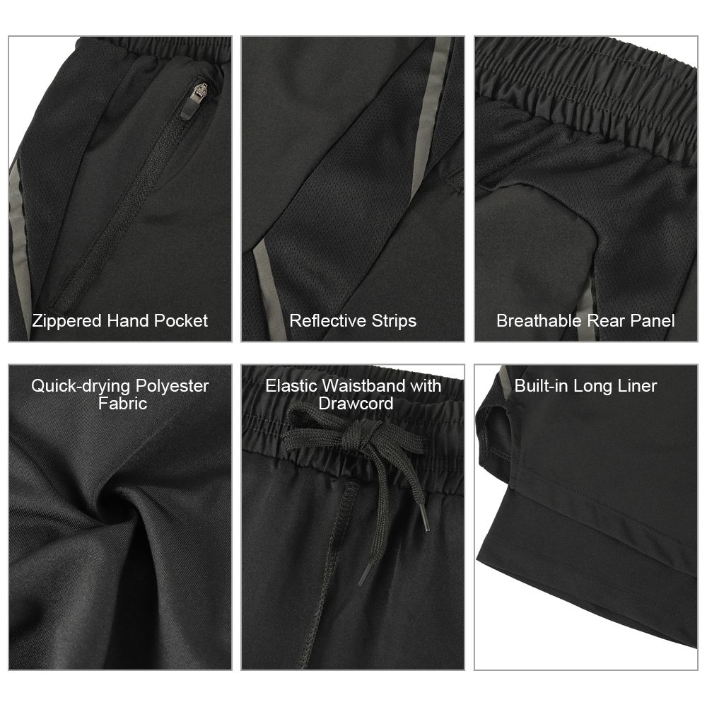 multiple functions, such as zippered hand pockets for item storage, reflective brand logo for night safety, elastic waistband with drawstring for comfortable fit, mesh panel for enhanced breathability, long liner for optimal comfort and protection. This running shorts allows full range for motion and activity, great for any man who love sports.