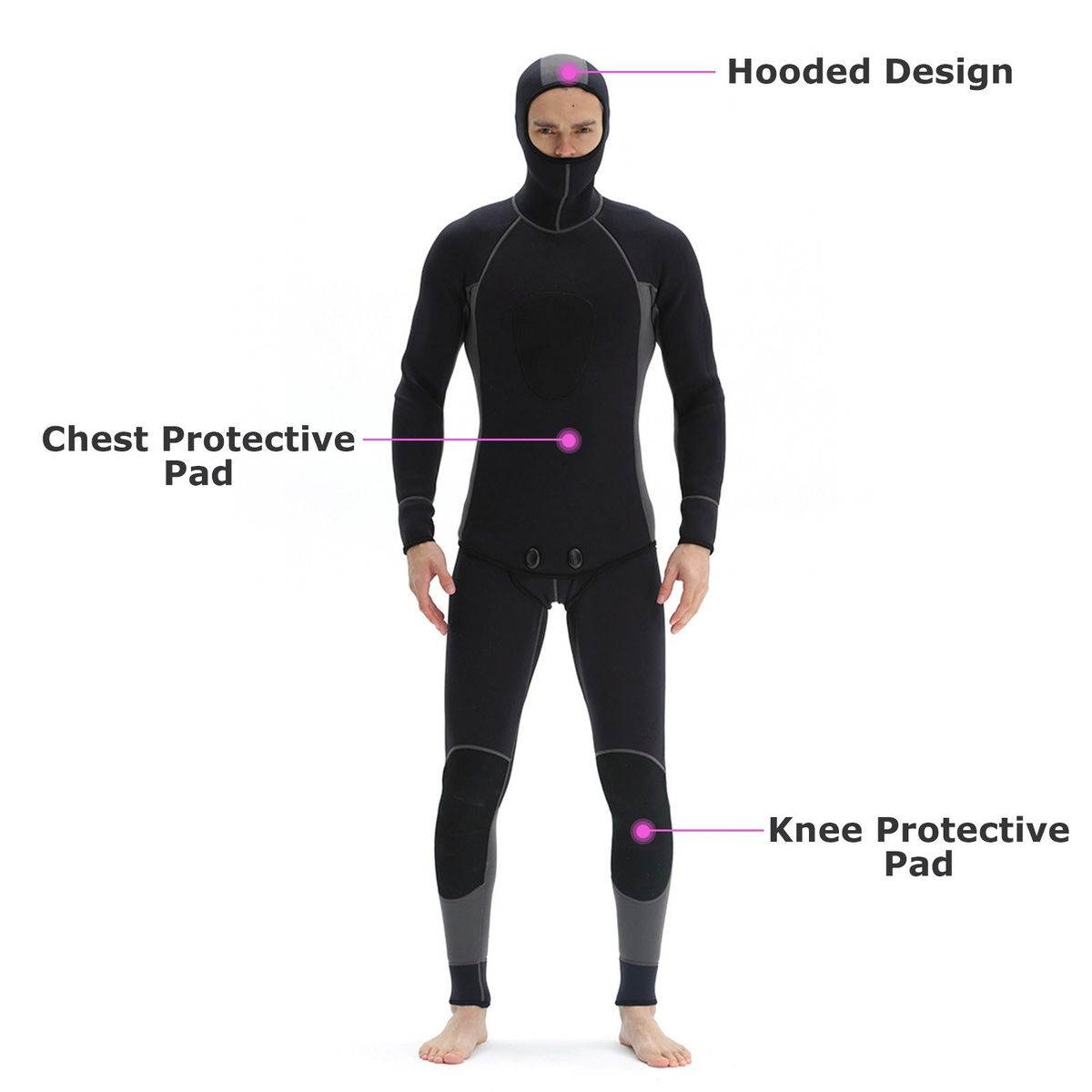 This 2-piece diving suit with long sleeves and hood design can provide ultimate protection and comfort, great choice for diving, spearfishing, scuba diving, swimming, surfing, kayaking and other water sports.