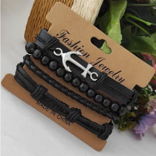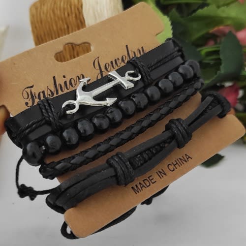 Buy Men 4 In 1 Leather Bracelet - Black in Nigeria