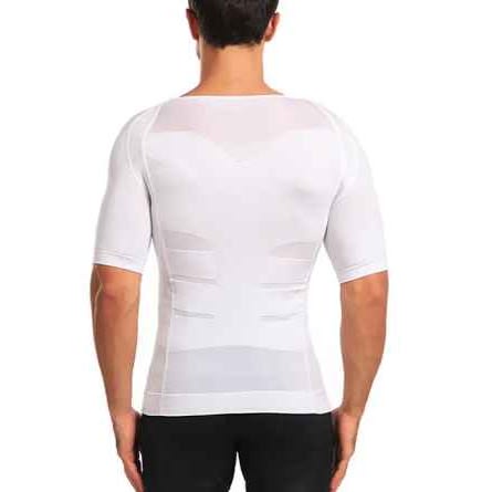 Men's Body Shaper, Zipper Compression Shirt Underwear Tummy Slimming Vest-White