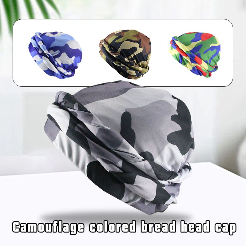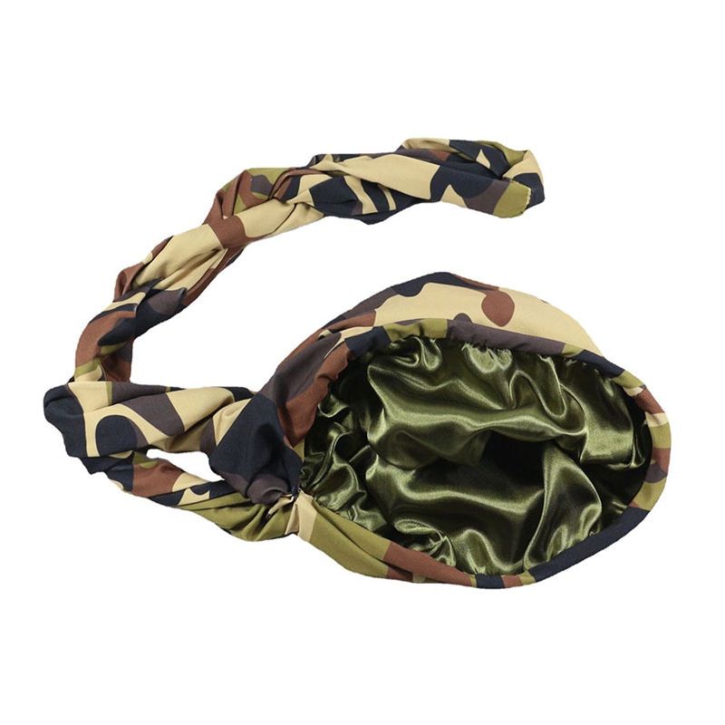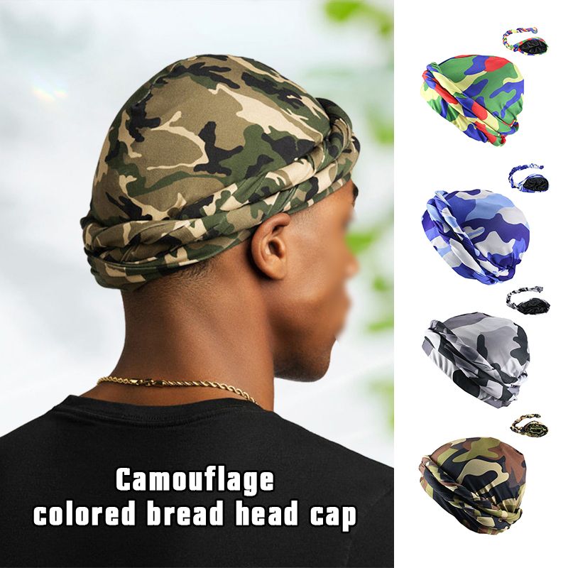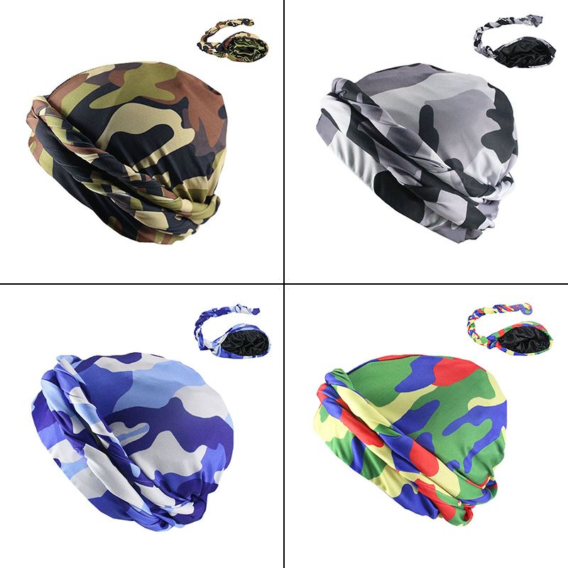 1X Men CamouflageTurban Hat Satin Silky Lined Turbans Soft Twist Head Wrap Street Hip Hop Male Bonnet Hat Head Scarf