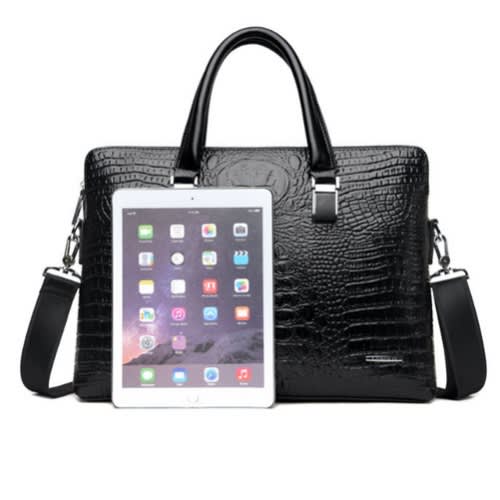 Men Crocodile Pattern Leather Briefcase + Wallet-Black