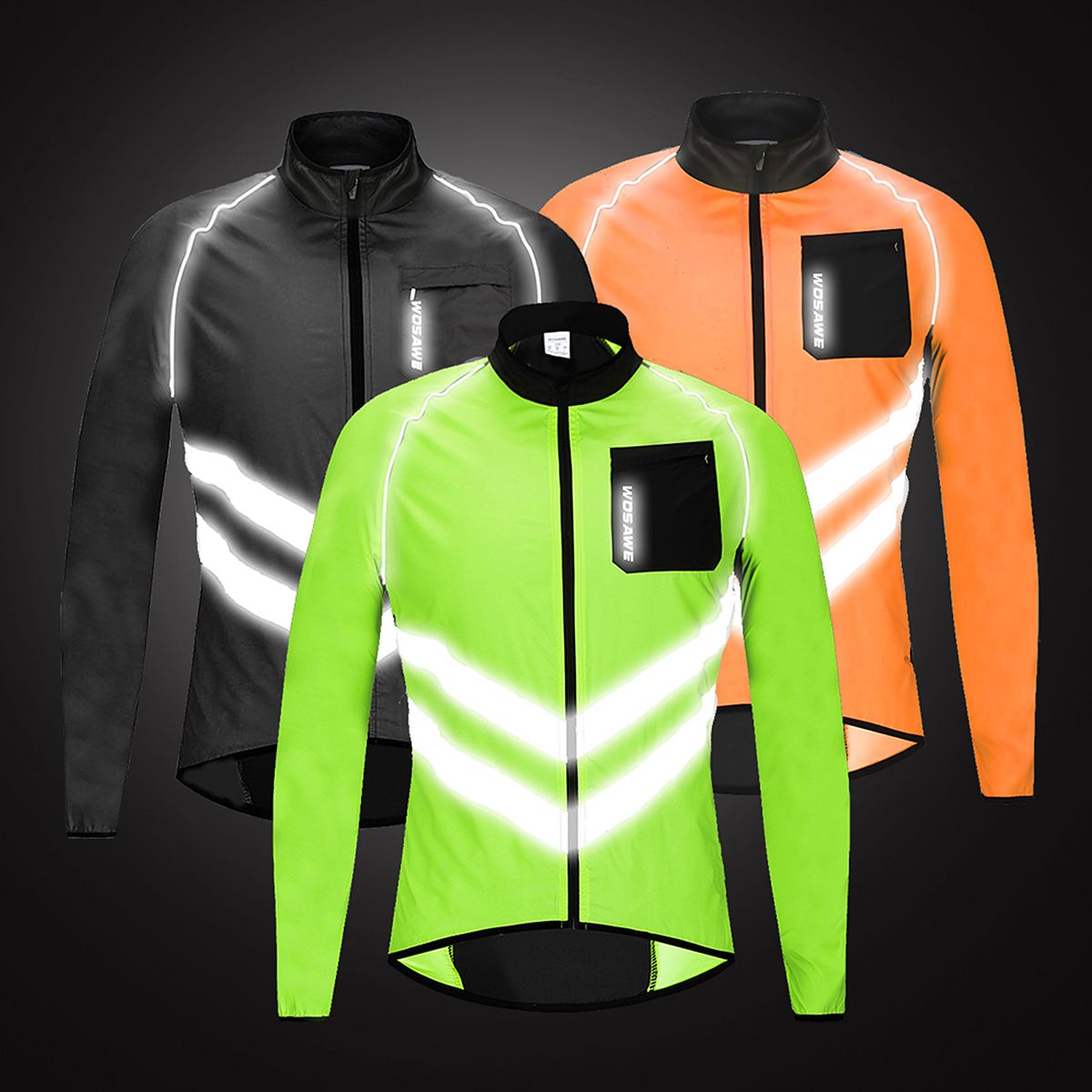 This cycling jacket is crafted from high-quality polyester fabric, water-resistant and lightweight. It features wide reflective strips to keep you visible and safe in low light, great safety gear for night activities like cycling, running, jogging, skateboarding, walking, etc.