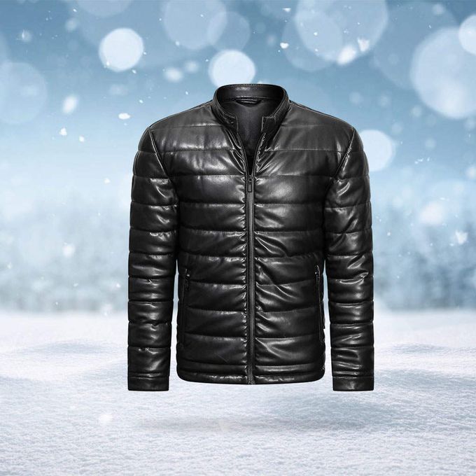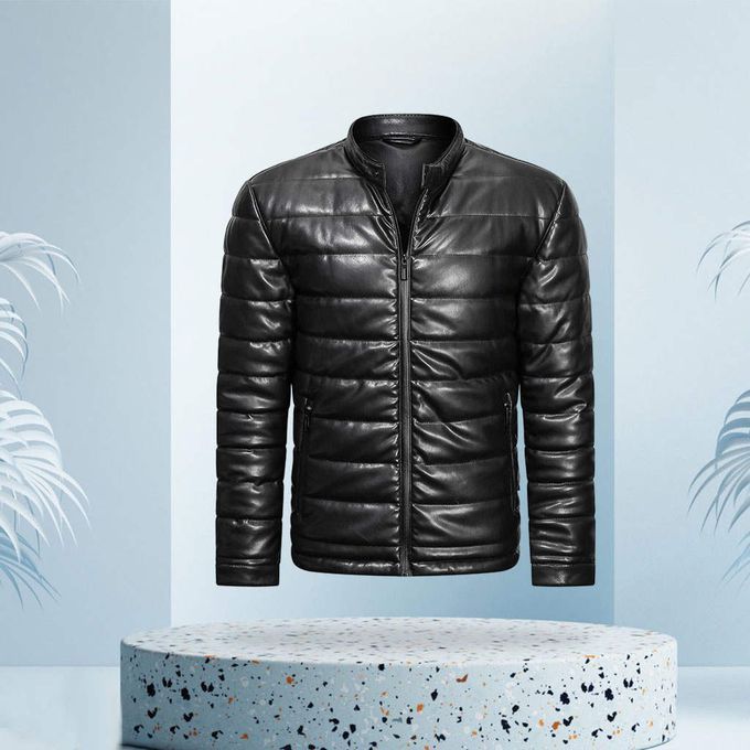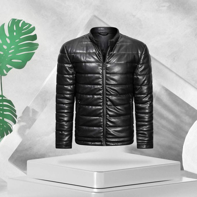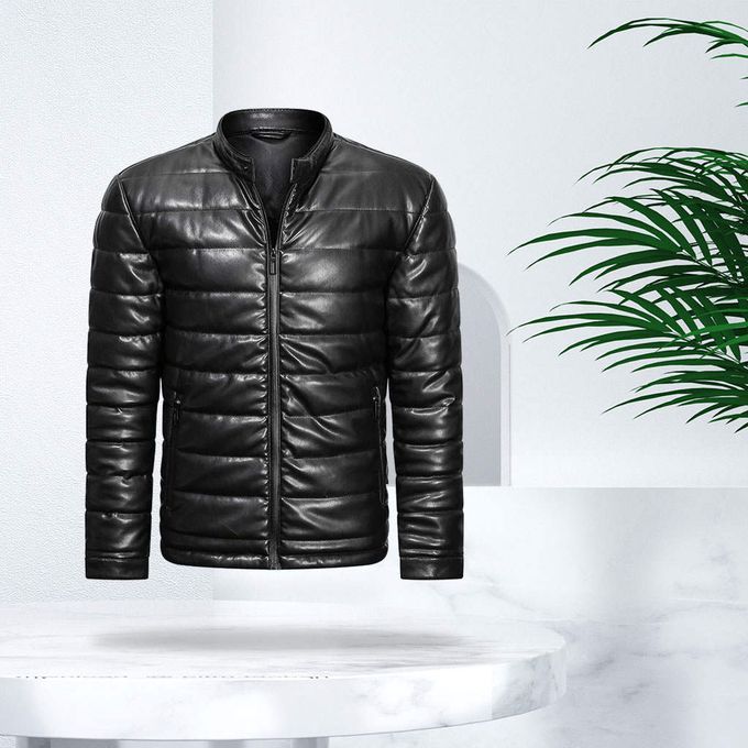 Buy Men Down Coat Warm PU Leather Fashion For Climbing Business Black XL in Nigeria