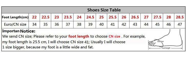 Size chart--- Men Size (38-48) ---Women Size(35-42)