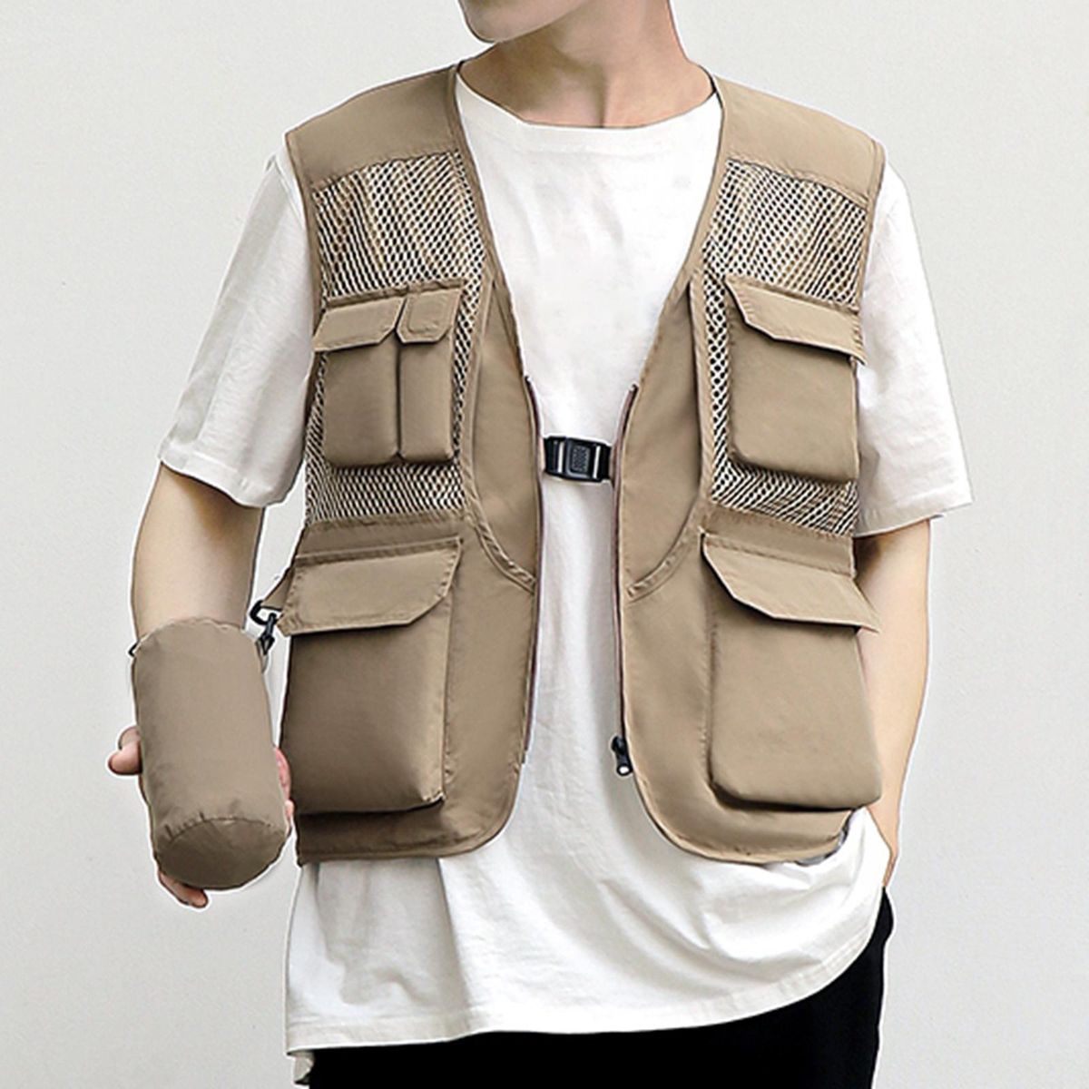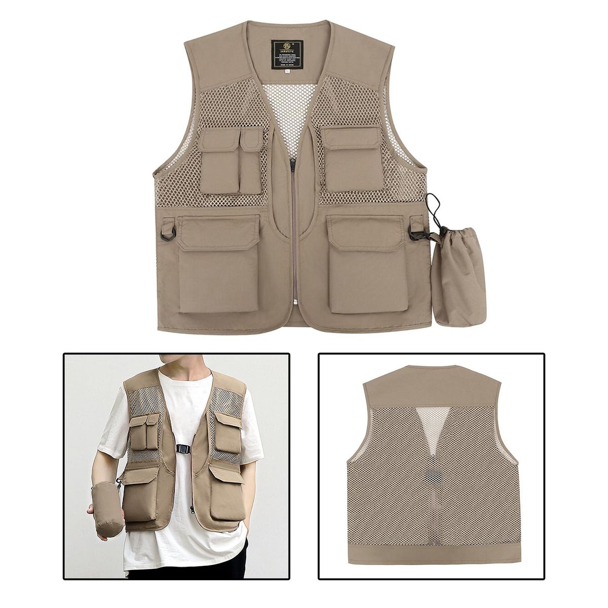 Buy Men Fishing Vest Quick Drying Multi Pockets Khaki M in Nigeria