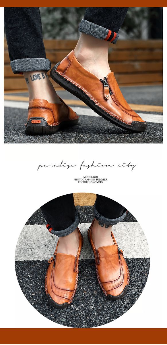 Shoe Type: Leather LoafersToe Type: Round ToeClosure Type: Slip OnGender: MaleOccasion: Casual, DailySeason: Spring, Summer, Autumn, WinterColor: Black,Brown,Dark Brown