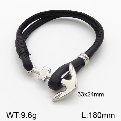 Buy Men Leather Anchor Link Bracelet - Silver Head in Nigeria