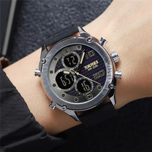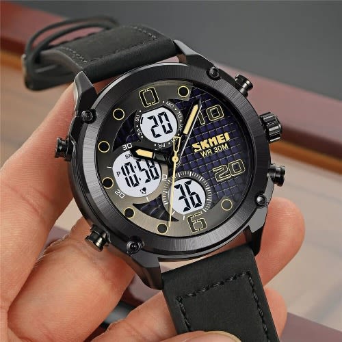 Buy Men Leather Strap Black Chrono Digital Quartz Wristwatch in Nigeria