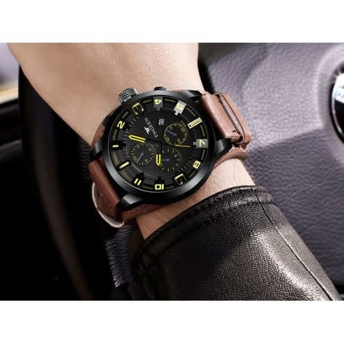 Chronograph Leather Strap Blrown Luxury Men's Wrist Watch