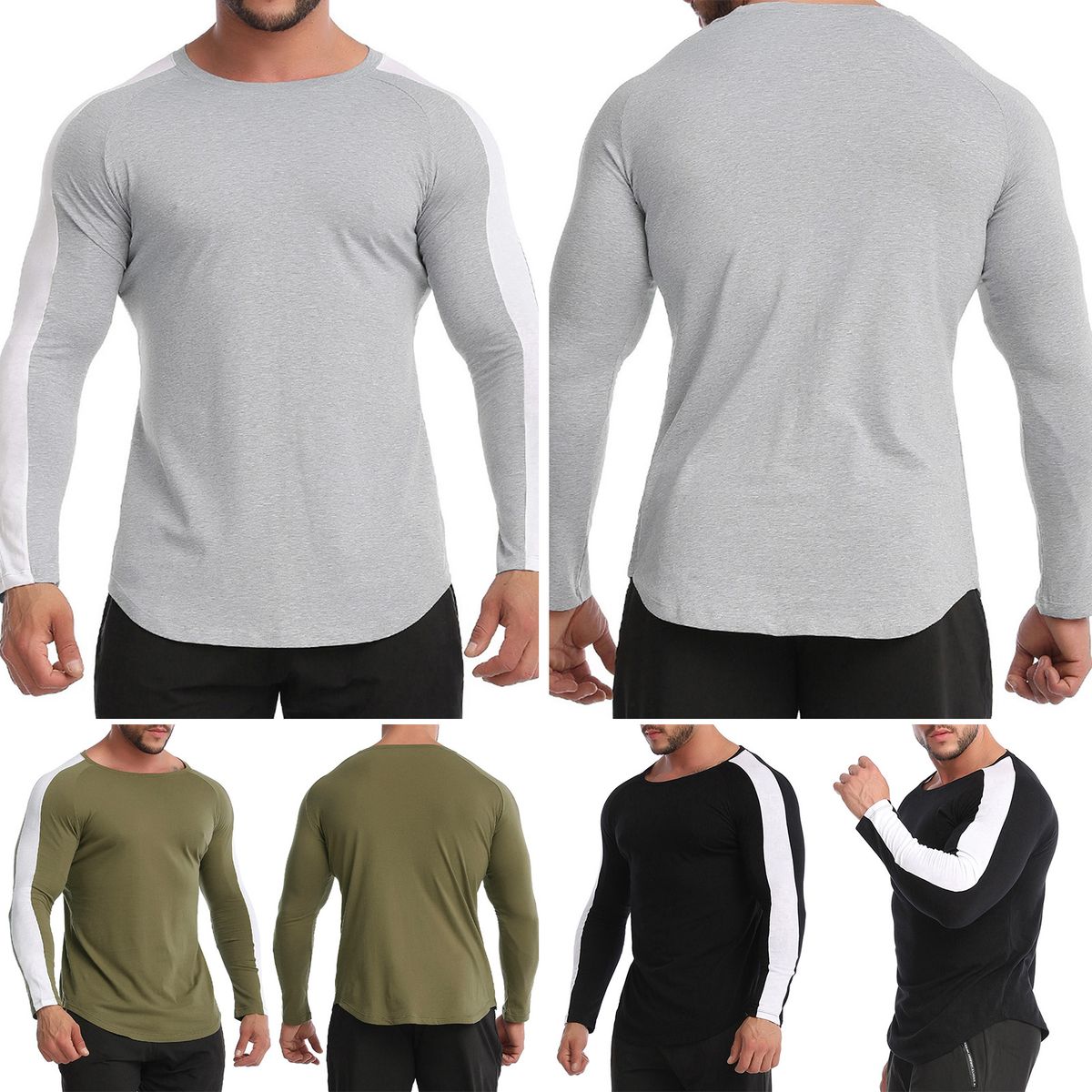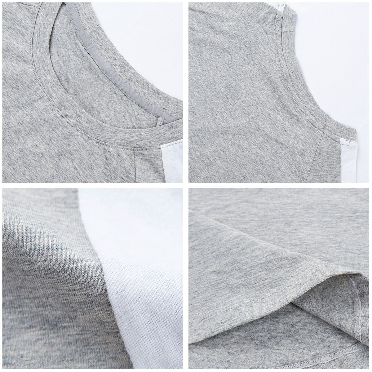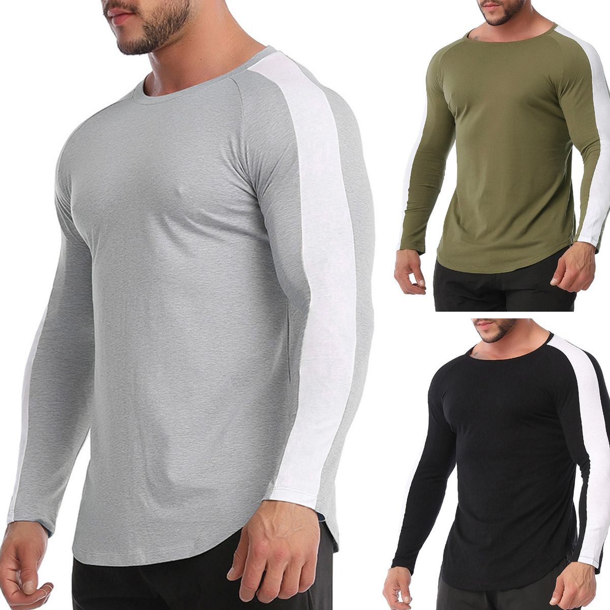 Casual long sleeves T-shirt with splicing design for lounging, and sports. It has round neck, raglan long sleeves, curved hemline and slim-cut that hug the body.