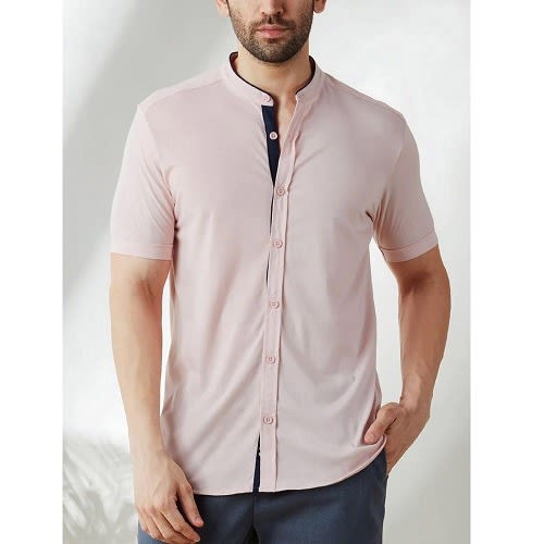 Buy Men Mandarin Collar Button Shirt - Pink in Nigeria