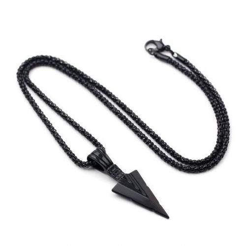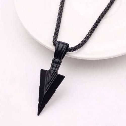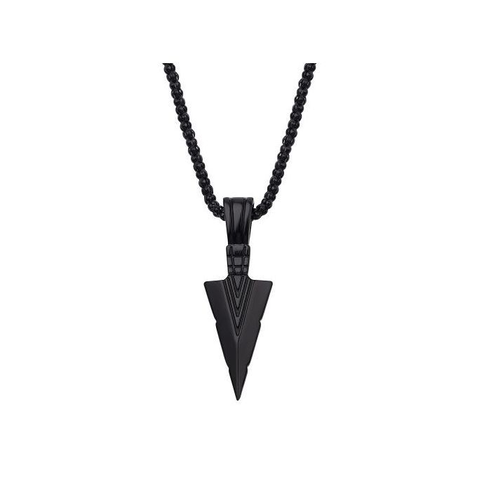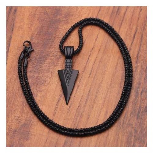 Blowin Fathers Day Gift Biker Punk Stainless Steel Black Arrowhead Pendant Necklace for Men 24 Inch Chain