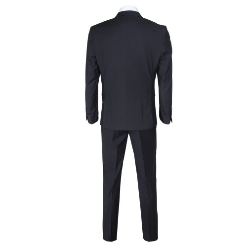 This smart, simple black suit in a beautifully lightweight fabric is perfect for either business, formal, or weekend-wear. Formal detailing includes a slim notch lapel, 2-button front, jetted pockets with flaps, and a stitched lining. Team it with a shirt colour of your choice and change up your look with a variety of accessories - from ties and cufflinks, to cravats and waistcoats