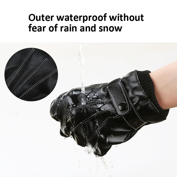 Men PU Velvet Lining Warm Gloves, Size: Free Size