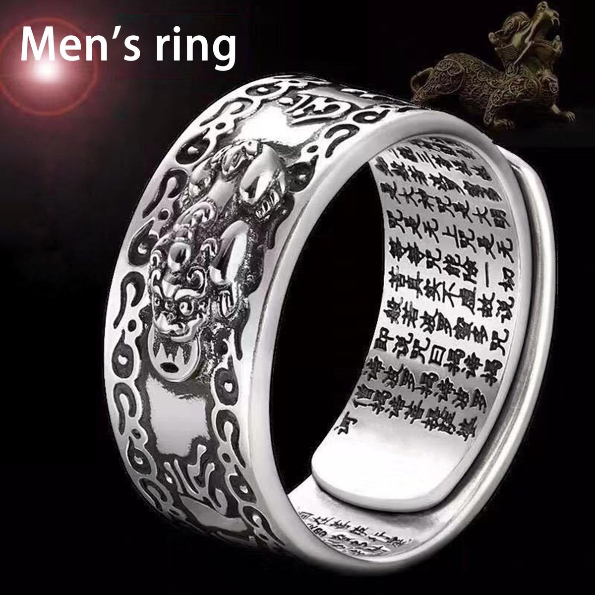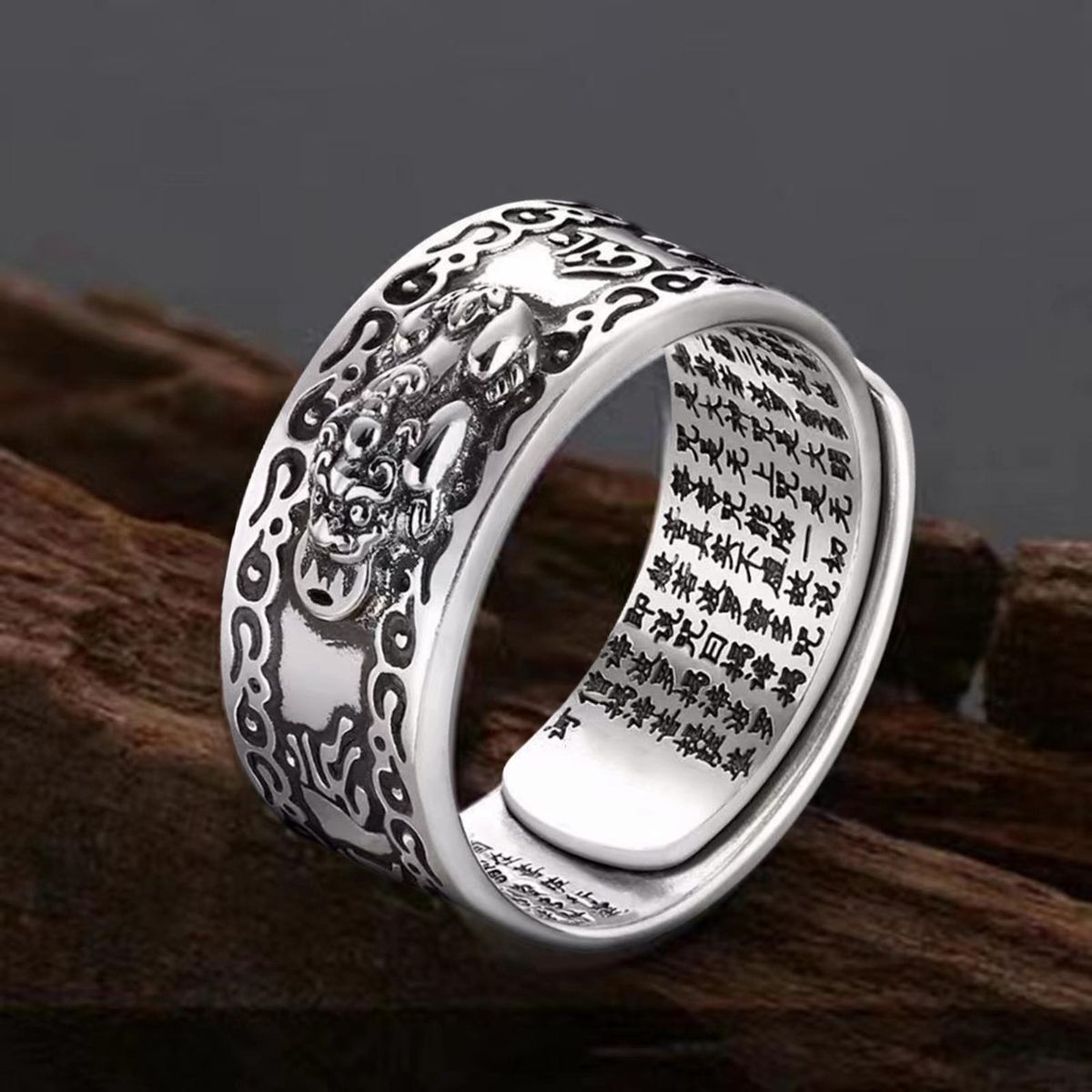 The ring, which has engraving sutra character and Chinese mythical animal decor, can add the sense of fashion and uniqueness and show your personality to help you create a cool and trendy style.