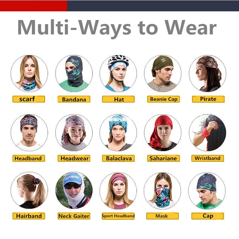 Using as half face Scarf, headband, scarf, neck gaiter, wrist band, headwrap, balaclava, bonnet, neckerchief and so on for various activities