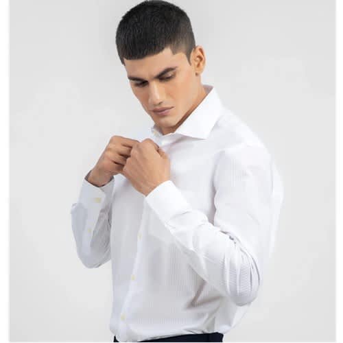 Buy Men Self Striped Formal Shirt - White in Nigeria