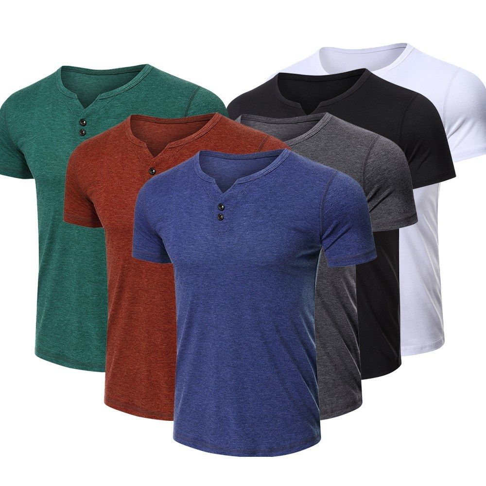 Solid short-sleeved T-shirt with a round neck and buttons decoration fits for different seasons and styles.