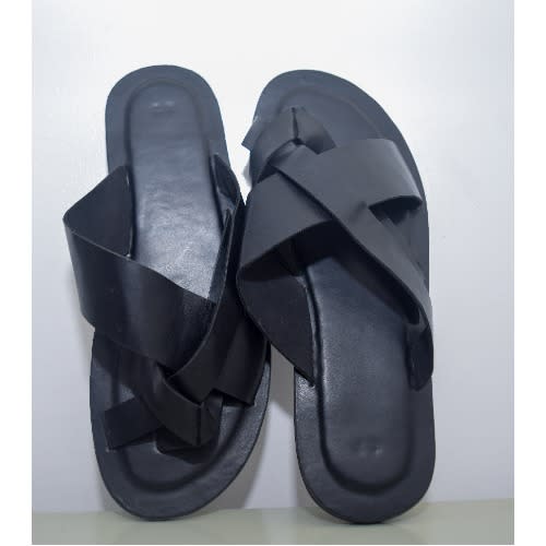 Buy Men Simple Crossed Leather Pam Slippers- Black in Nigeria