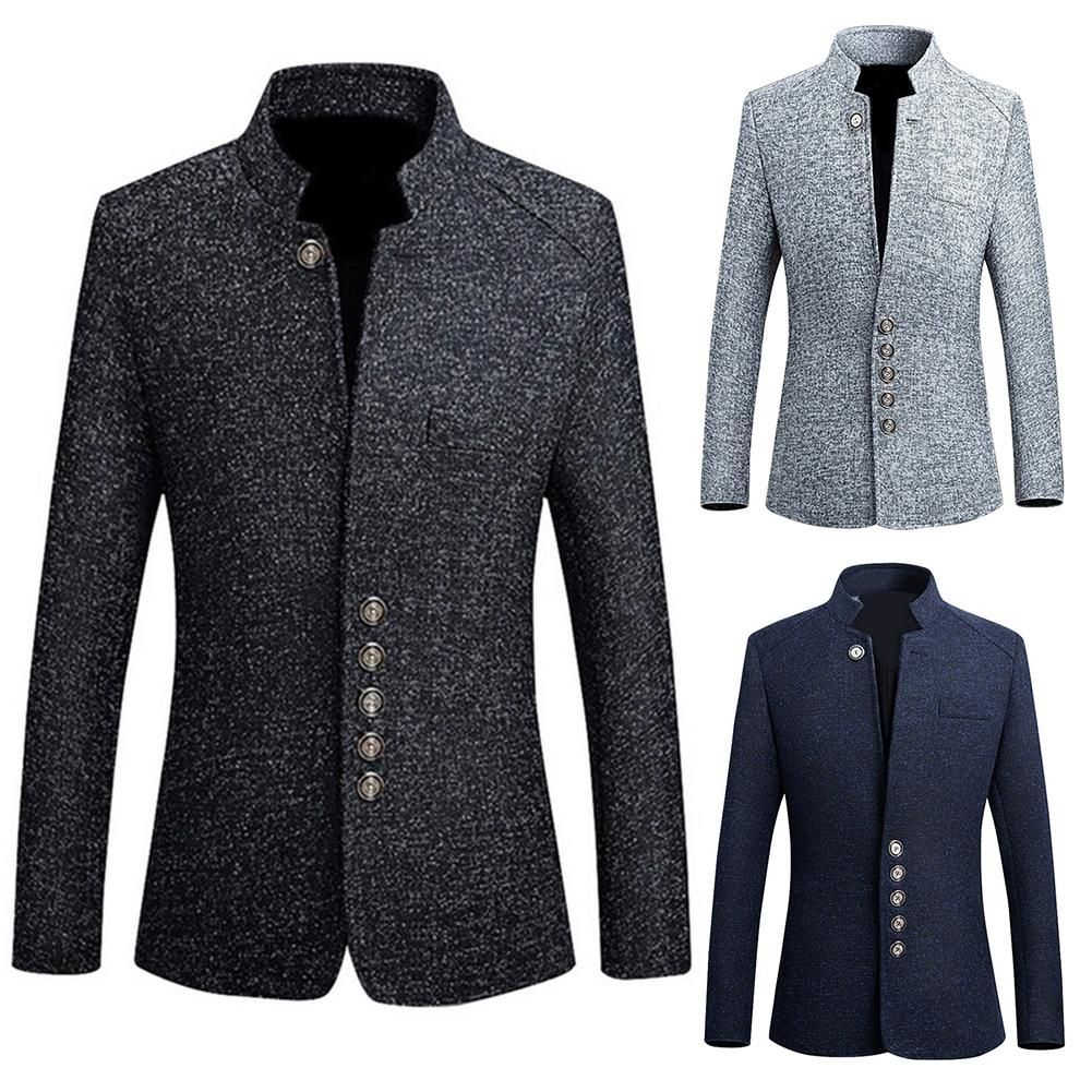 1X Men Solid Color Long Sleeve Stand Collar Single-breasted Plus Size Slim B Men B Solid Color Single Breasted Autumn