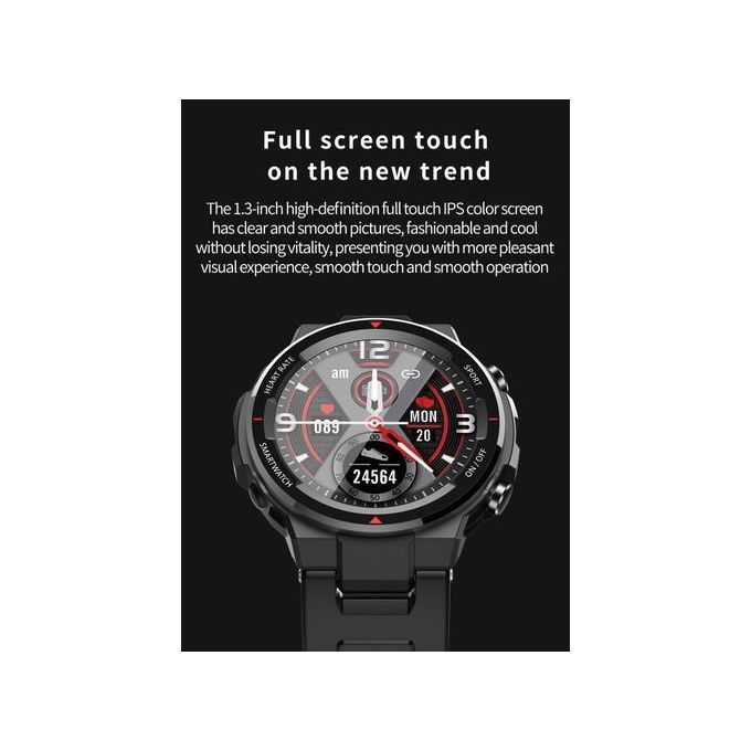 This smart watch can help you to solve these problems:1.You look like active in wearing this man sport watch.2.Sleep measurement can detect your deep sleep and light sleep quality.3.If you want to keep fit, you'd better enjoy sports, such as walking, running, climbing, cycling, playing football, playing basketball, playing badminton, playing ping-pong and swimming. This watch can help you to make a breakthrough in sports.4.Taking care of your health by monitoring your heart rate and blood pressure.5.You can remote control photography, lift your wrist to light the screen and view all real time information and call from the watch.6.The watch also has other functions such as countdown, stopwatch and setting (including: theme selection, brightness, reset, shutdown and about the watch)7.Full touch screen and 2 side buttons to operate it.8.All kinds of reminders keep you informed: sedentary reminder, drinking water reminder, alarm clock reminder, meeting reminder, pill reminder.