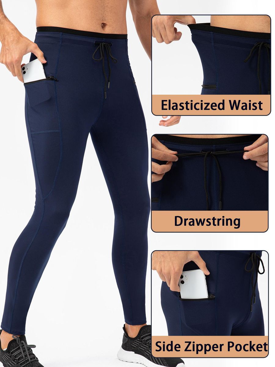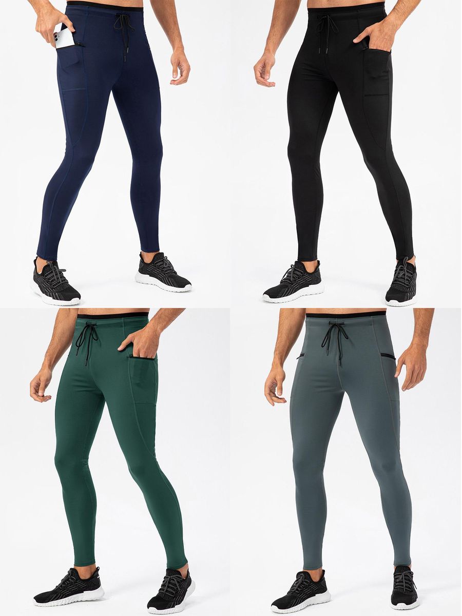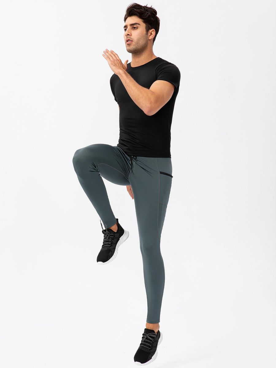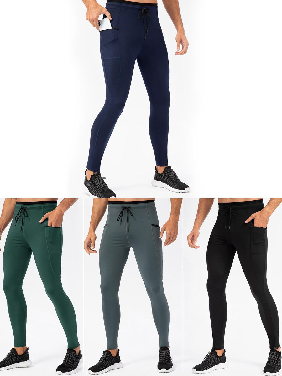 Buy Men Sports Tights with Pockets Elastic Waist Drawstring Tapered Running Leggings in Nigeria