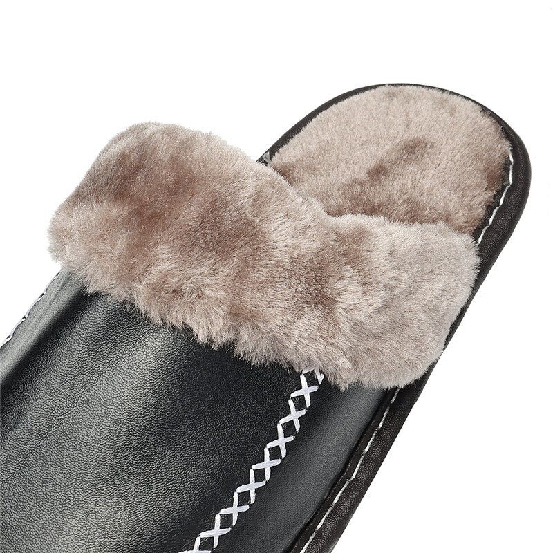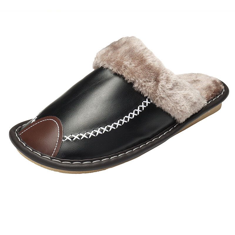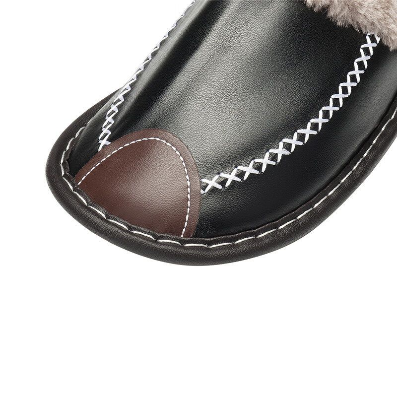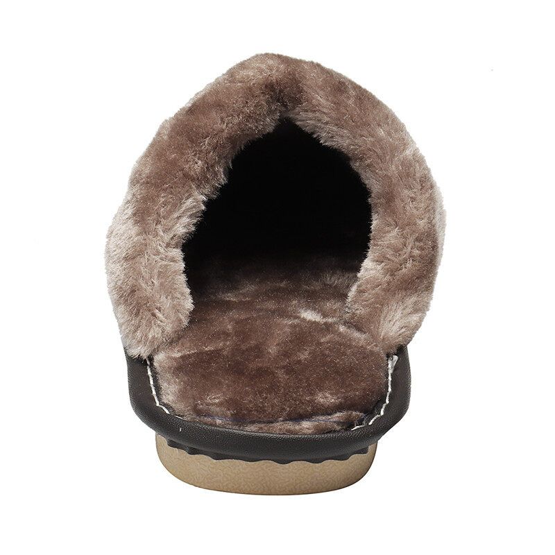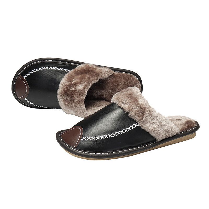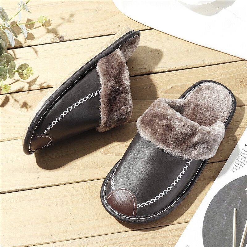 Men Spring Winter Home Slippers Leather Indoor Close Toe Warm House Flats Shoes Comfy( + Best Discount)