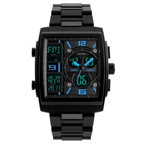 This is a 5ATM water-resistant casual watch for men. Made from high transparent resin mirror and digital movement. Multi-function such as 3 time, chronograph, date / week display, alarm, 12 / 24 hours etc.