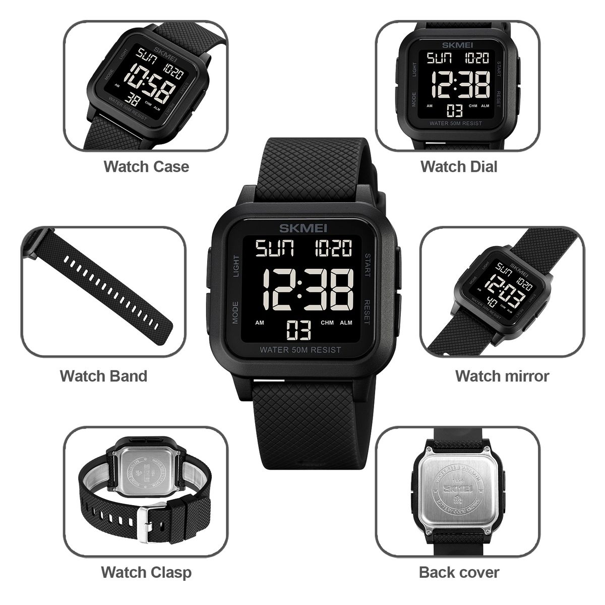 8.Function: 2Time, Chrono, Alarm,Date, Week, EL Light, 12/24 hour clock, Countdown