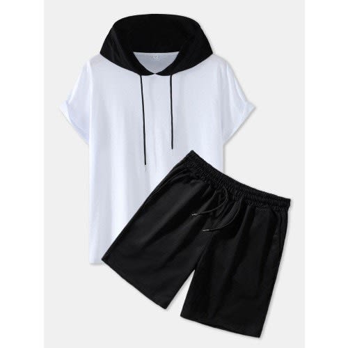 Buy Men White & Black Short Sleeve Hoodie & Shorts in Nigeria