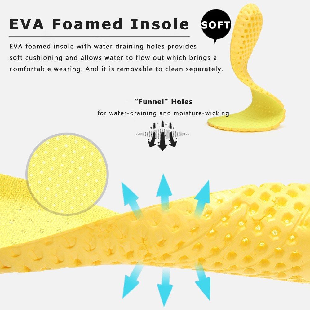Removable EVA Foamed Insole: EVA foamed insole with holes provides breathable cushioning while walking. And it is removable to clean.