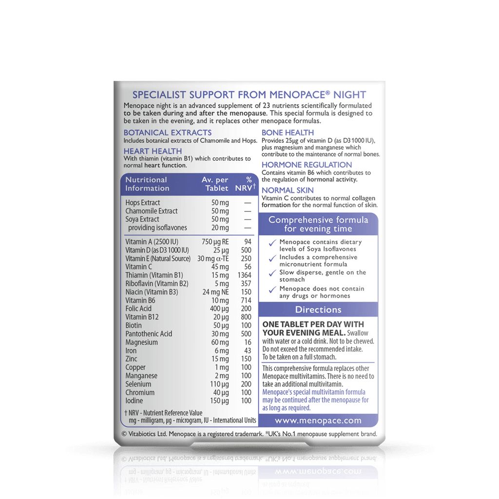 - An advanced formulation of Menopace with the addition of Chamomile and Hop extracts to be taken at night time.