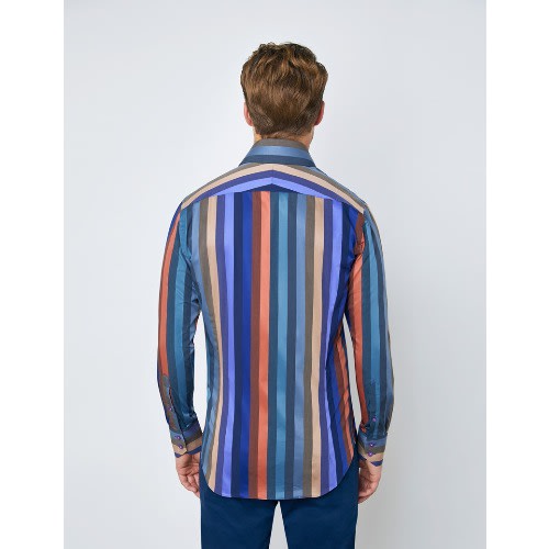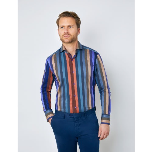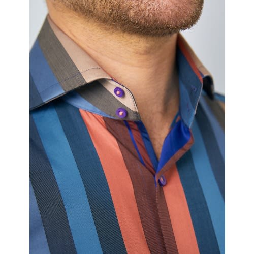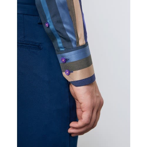 Buy Men's Blue & Purple Jacquard Multi Stripes Slim Fit Shirt - High Collar - Single Cuff in Nigeria
