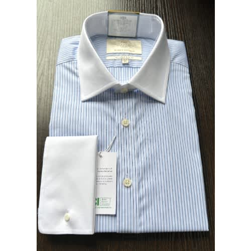 Adding a touch of contrast to the traditional striped shirt, the white collar and cuffs reimagines classic shirting. Closely cut to the body and slightly tapered at the waist, creating a narrow silhouette with subtle definition, you will look sharp from desk to dinner plans.At Hawes and Curtis we appreciate that our clientele lead busy lives, and as a solution we have introduced our non-iron range. These shirts utilise the latest anti-crease technology which lasts much longer than other non-iron shirts.