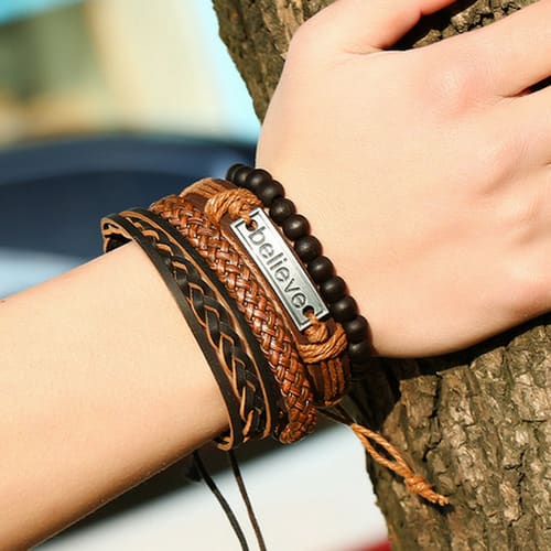 Buy Men's Bracelet Vintage Woven Leather Jewelry- Black & Brown in Nigeria