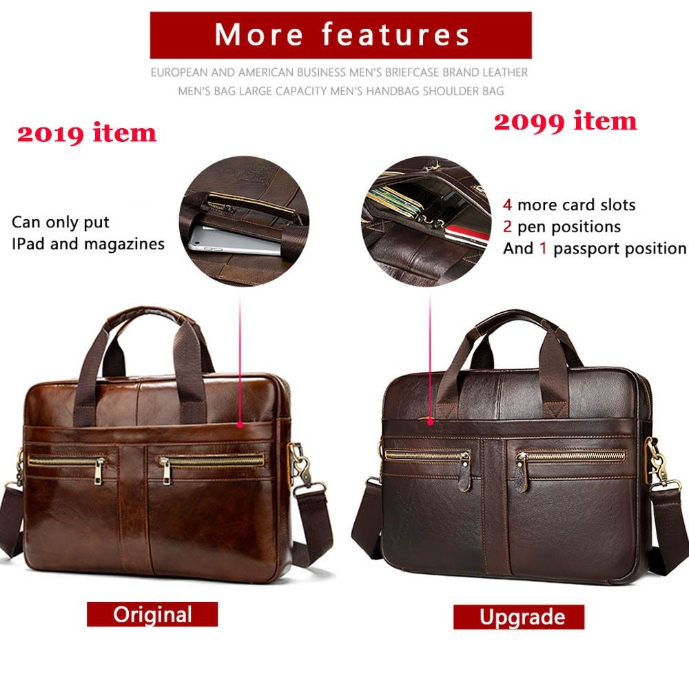 1X WETSTAL Men's Briefcases for Laptop Bag 14'' Genuine Leather Messenger Bags for Men Computer Bag for Documents A4 Portfolio 2019