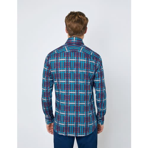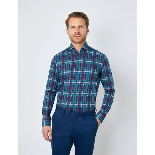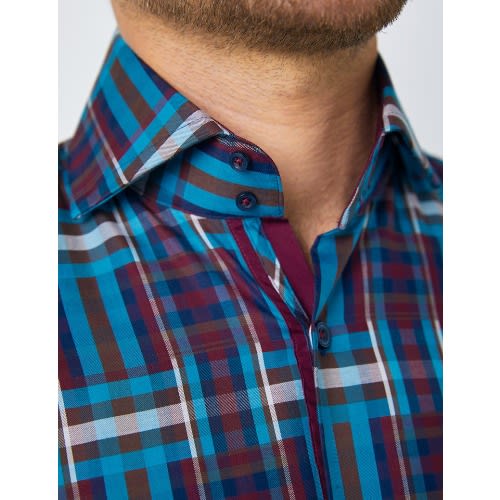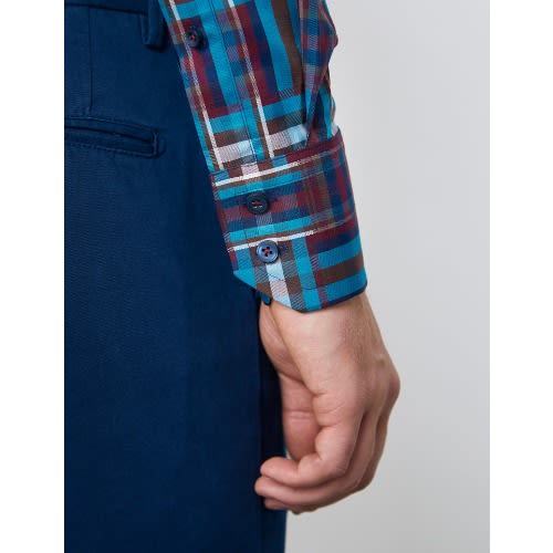 Buy Men's Brown & Blue Check Relaxed Slim Fit Shirt - High Collar - Single Cuff in Nigeria