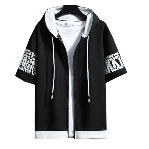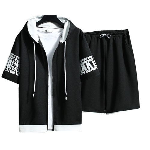 Men Two Piece Fashion Hooded Short Sleeve Fitness Sports Suit Casual Breathable Sportswear Short Sleeve Pullover+Shorts*Includes short-sleeved jacket, shorts (excluding short-sleeved T-shirt)Place of origin: CN (Origin)Collar: HoodedBuckle type: