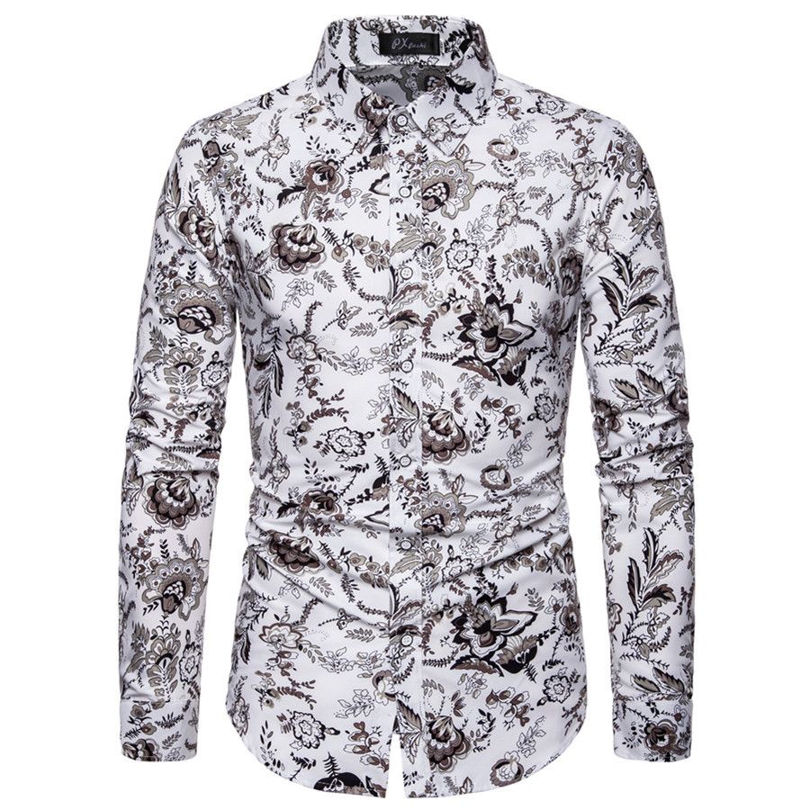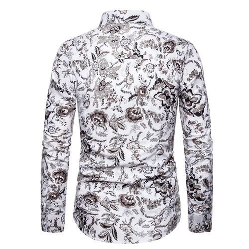 1*Men's Casual Floral Shirt Long Sleeve - White