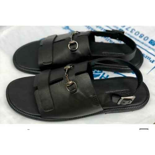 Buy Men's Chain Detail Leather Sandals - Black in Nigeria
