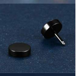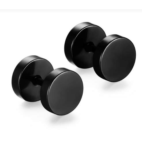 FDS Men's Black Plated Stainless Steel Circle Stud Earrings with Screw Back.