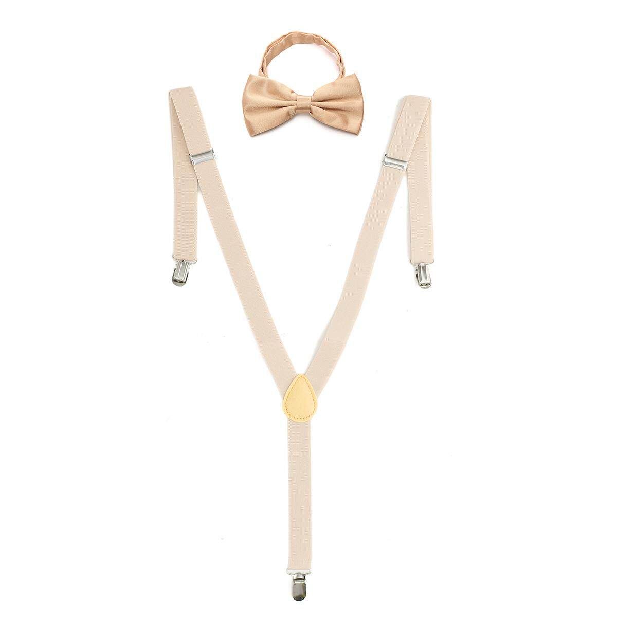 Buy Mens Clip-on Suspenders Elastic Adjustable Y-Back Braces With Bow Tie Suit Set Beige in Nigeria
