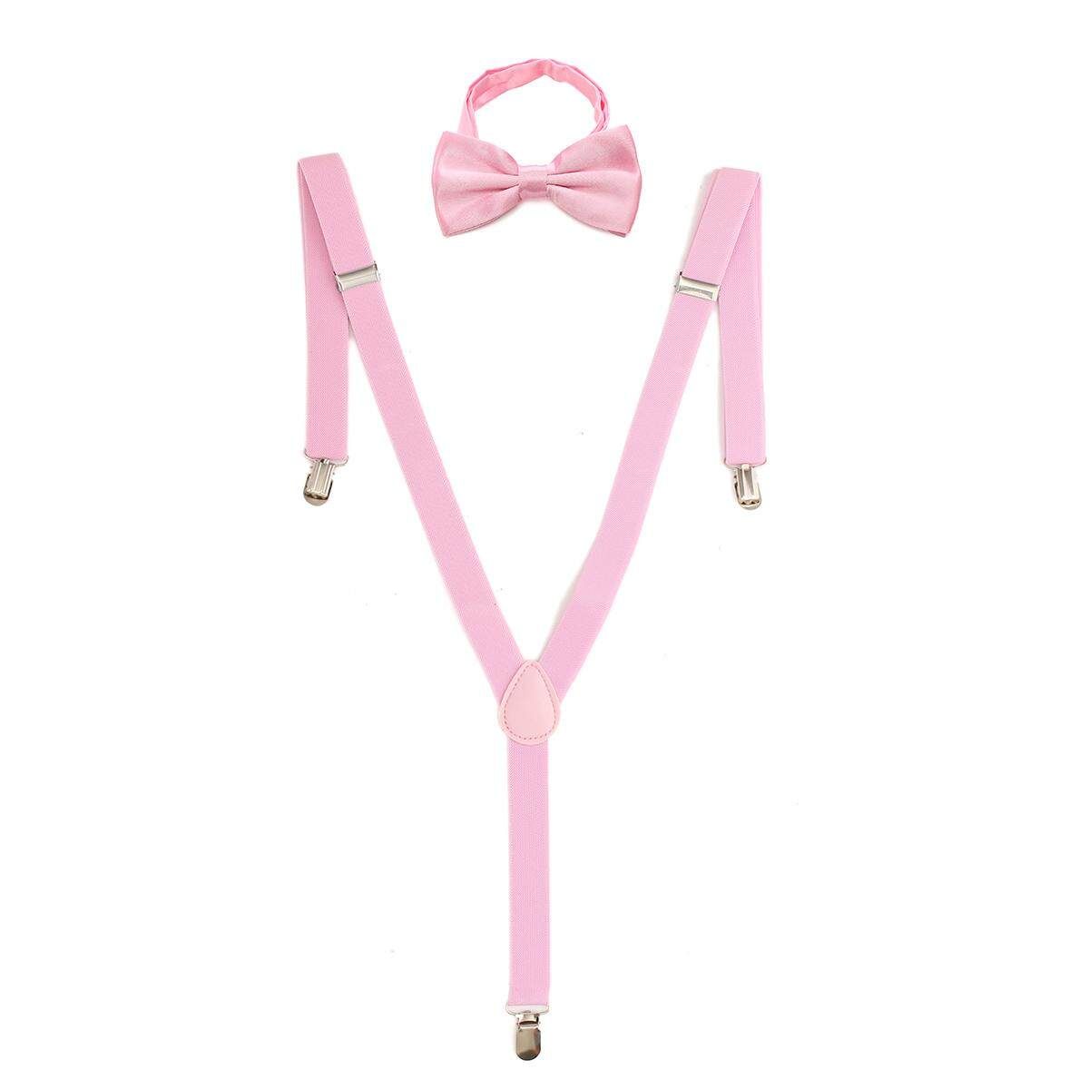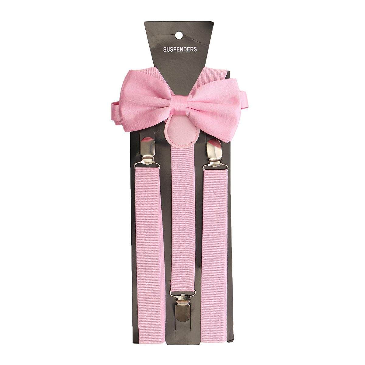 Buy Mens Clip-on Suspenders Elastic Adjustable Y-Back Braces With Bow Tie Suit Set Pink in Nigeria
