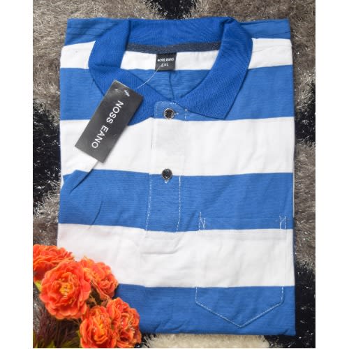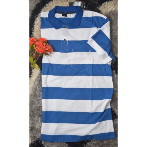 Buy Men's Cotton Casual Short-sleeved T-shirt Polo - Blue & White in Nigeria