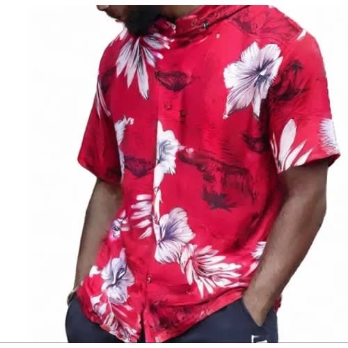 Mens Casual Short Sleeve Floral Shirt Red
