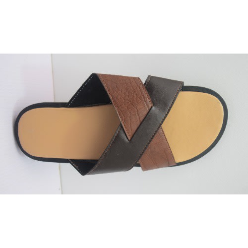 Buy Men's Cross Plain & Pattern Leather Pam Slippers- Brown in Nigeria