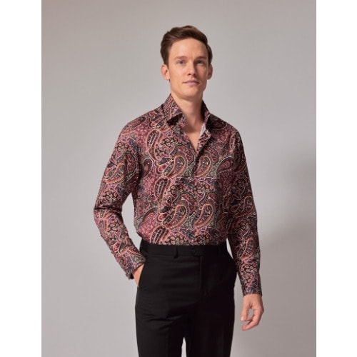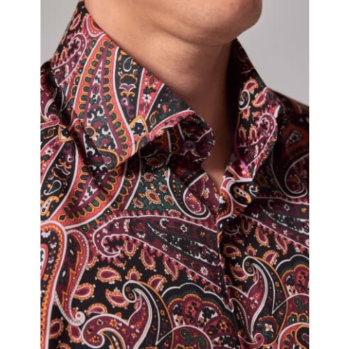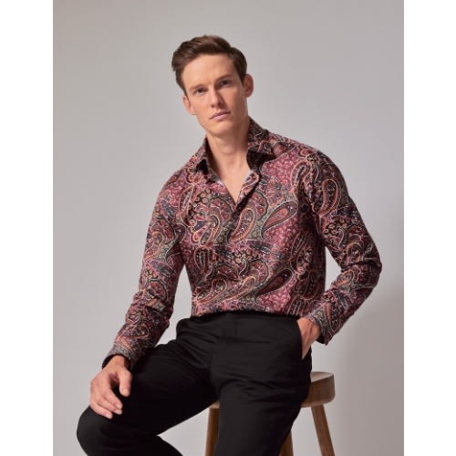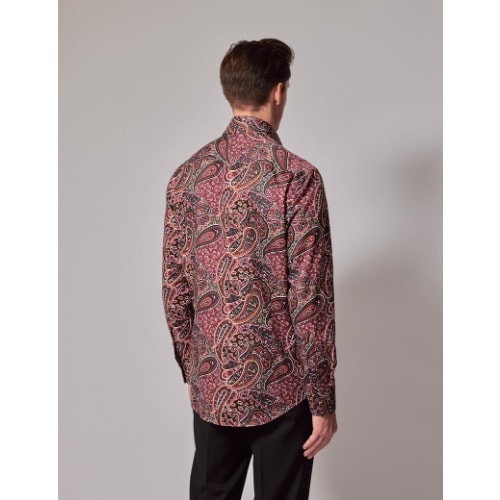 Buy Men's Curtis Burgundy & Green Paisley Cotton Slim Fit Shirt - Mid-collar in Nigeria