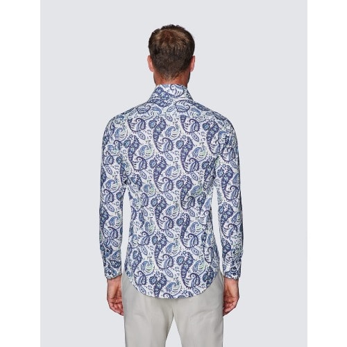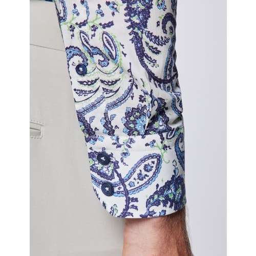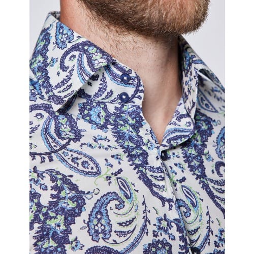 Buy Men’s Curtis Cream & Blue Paisley Print Slim Fit Shirt - Low Collar in Nigeria