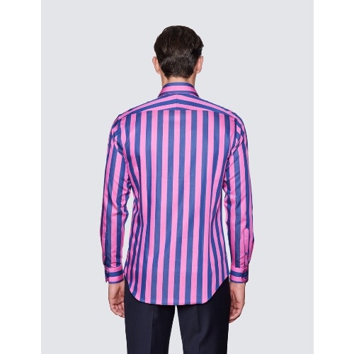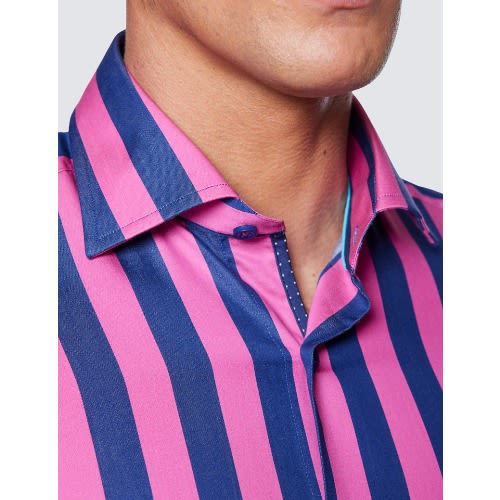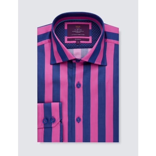 Buy Men's Curtis Fuchsia & Blue Stripe Slim Fit Shirt - Low Collar in Nigeria